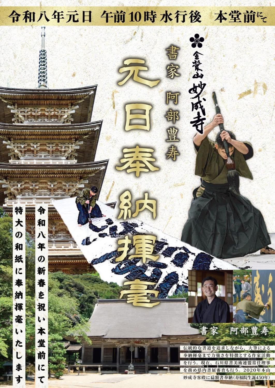 WPT書家の会メンバー阿部豊寿氏による元旦奉納のご案内